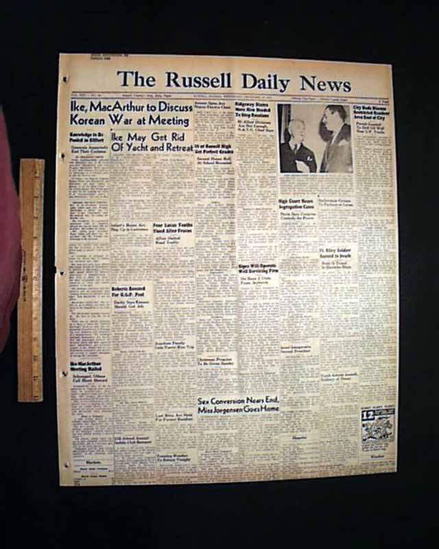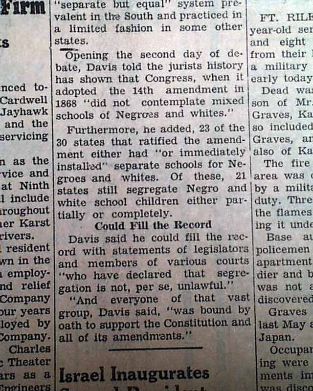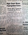 This 6 page newspaper has one column headlines on the front page: "High Court Hears Segregation Cases" and "Davis Says Congress Controls the Power" with smaller subheads and related photo. This tells of the 1st argument talks of the famous supreme court case.