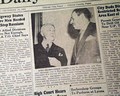 Other news, sports and advertisements of the day. A few small binding holes along the spine, otherwise good condition