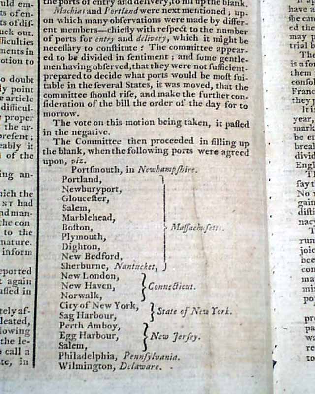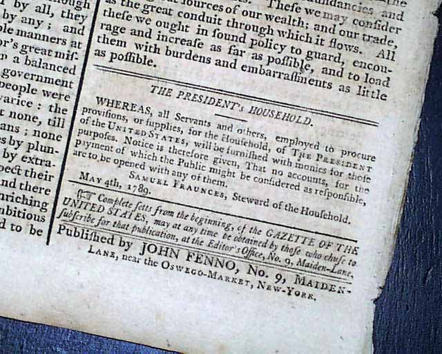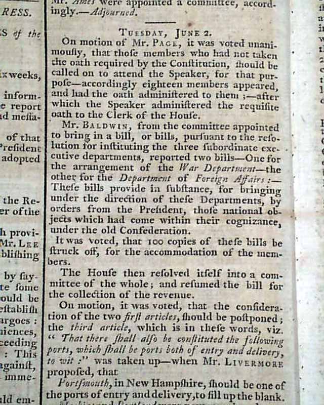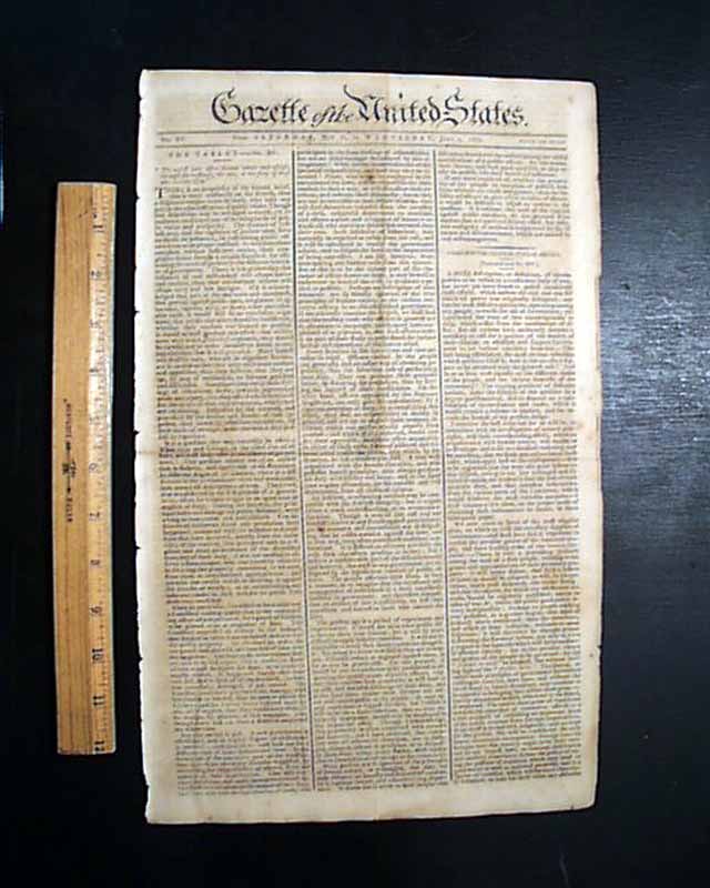 GAZETTE OF THE UNITED STATES, New York, June 3, 1789 The front page includes a continued contribution to a series titled: "A Sketch of the Political State of America".