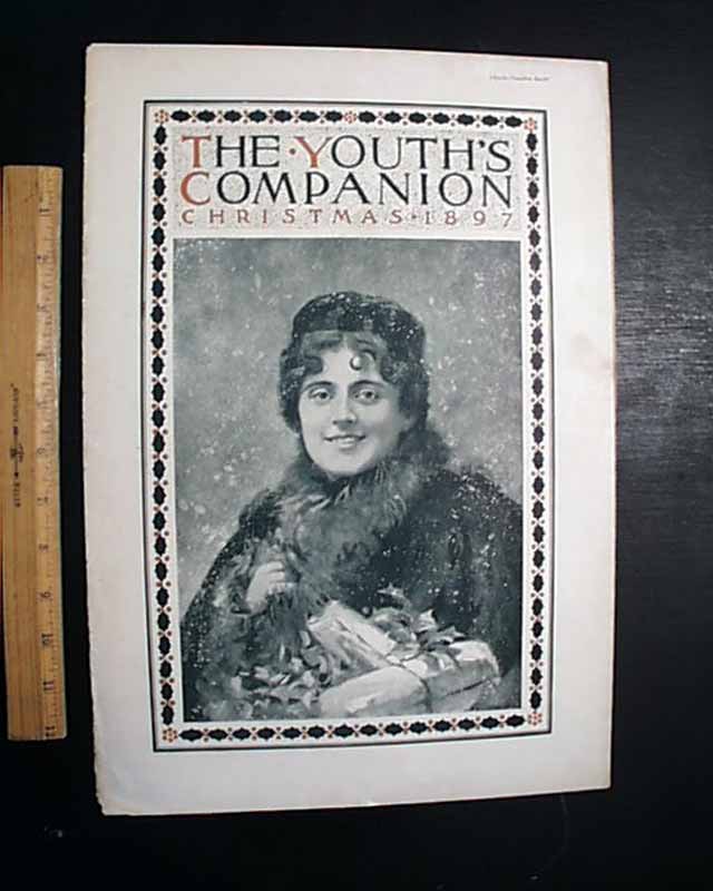 THE YOUTH'S COMPANION--Christmas 1897 The full cover has a festive print of a woman with packages & holly. Inside has a print showing Santa Claus talking to a young girl on the telephone. The complete issue, never bound nor trimmed, generally nice.
