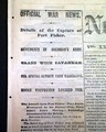 Among the front page one column heads on the Civil War are: "OFFICIAL WAR NEWS" "Details of the Capture of Fort Fisher" "Movements Of Sherman's Army" "Trade With Savannah" "More Victories Looked For" and more.