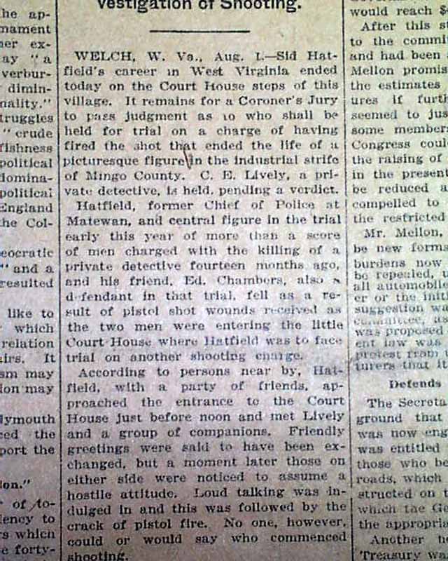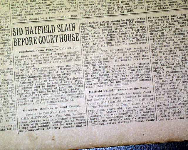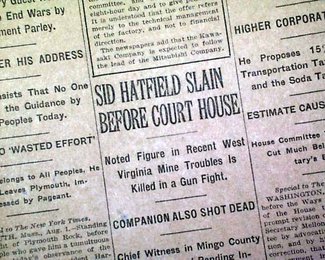 and more. 1st report coverage on the shooting death of William Sidney 'Sid' Hatfield, police chief of Matewan, West Virginia.