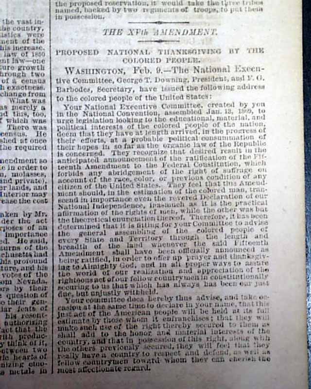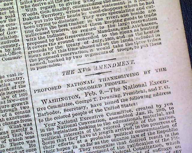 Coverage on the recent passing the 15th Amendment giving the right to vote for all races.