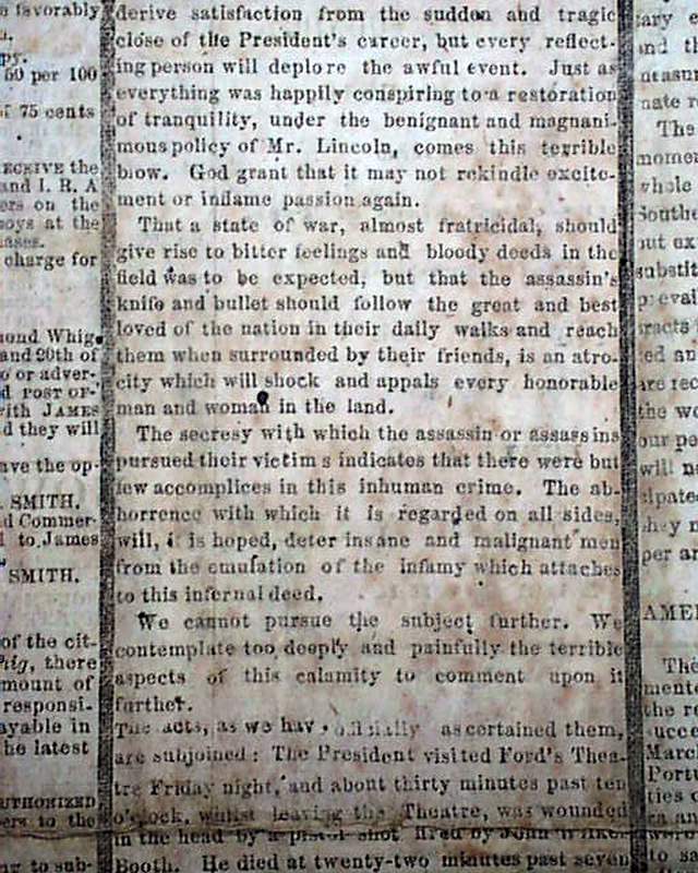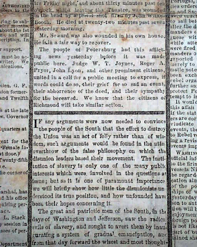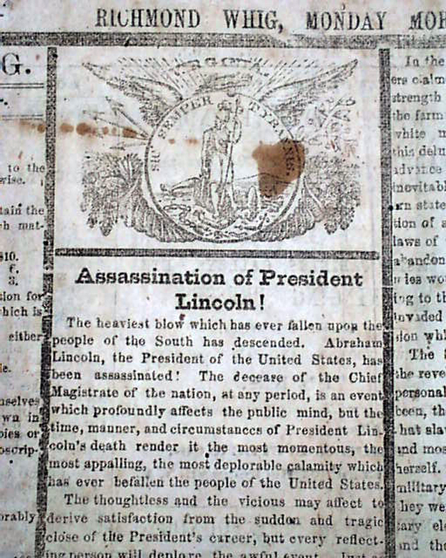An exceedingly significant issue being the first Southern paper to report Lincoln's assassination. And keep in mind that this reporting was read by an audience of residents of what just two weeks prior was the capital of the Confederate States of America.