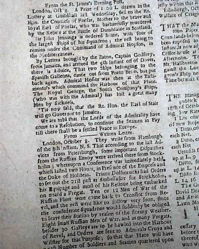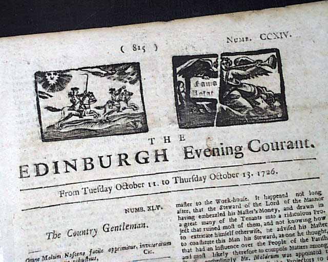 THE EDINBURGH EVENING COURANT, Scotland, October 13, 1726