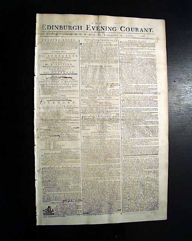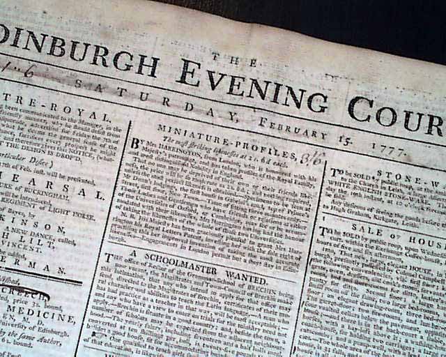 EDINBURGH EVENING COURANT, Scotland, Feb. 15, 1777
