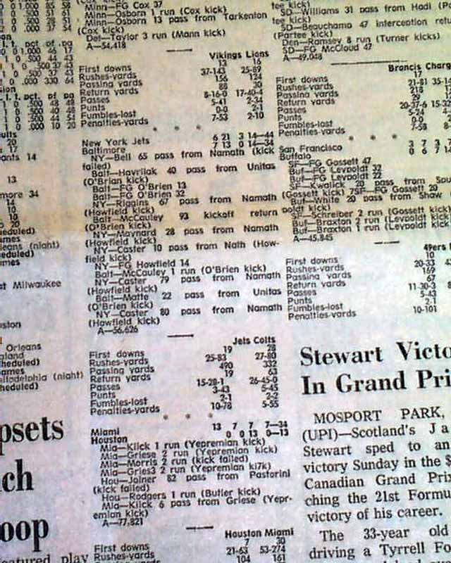 The sport's section (page 15) has a three column heading: "Namath Puts on Show".