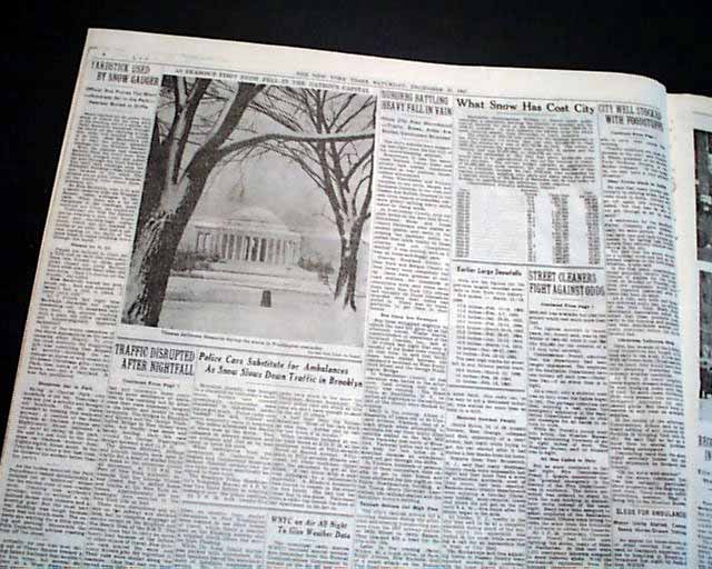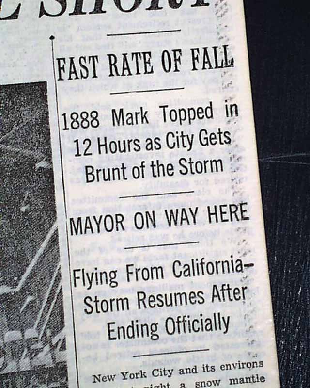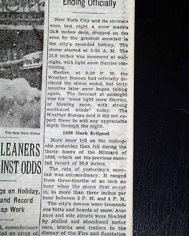 "RECORD 25-INCH SNOW CRIPPLES CITY AND EAST; ALL TRAFFIC SLOWED, LONG ISLAND IS DISRUPTED; THOUSANDS MAROONED; FOOD AMPLE, FUEL SHORT"