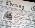 Other news of the day with several interesting advertisements throughout. Larger than normal issue measures 26 x 20 inches, complete in 4 pages, a little spine wear, otherwise nice condition.