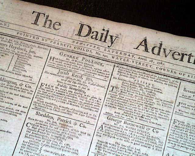 THE DAILY ADVERTISER, New York, April 18, 1789