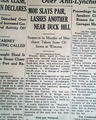 The front page has one column headlines: "MOB SLAYS PAIR, LASHES ANOTHER NEAR DUCK HILL" "Suspects in Murder of Merchant Taken from Officers at Winona" Another related report on the front page as well. See images for headings here. 1st report coverage on the lynching of Negroes Roosevelt Towns and Bootjack McDaniels at Duck Hill, Mississippi.