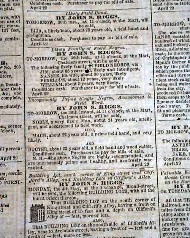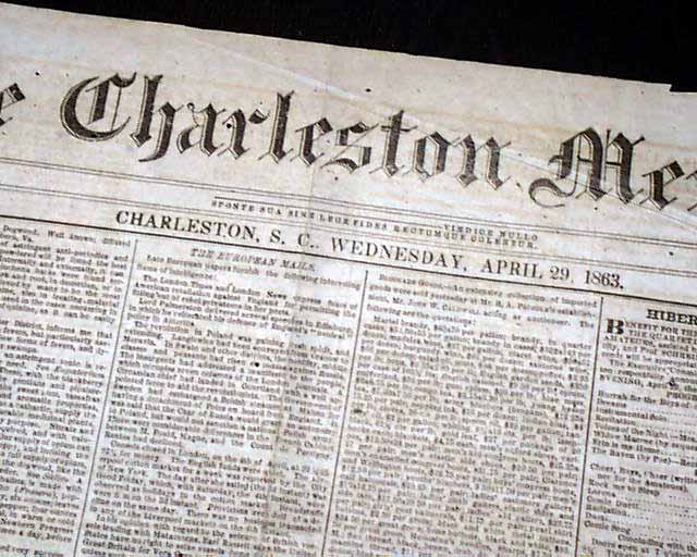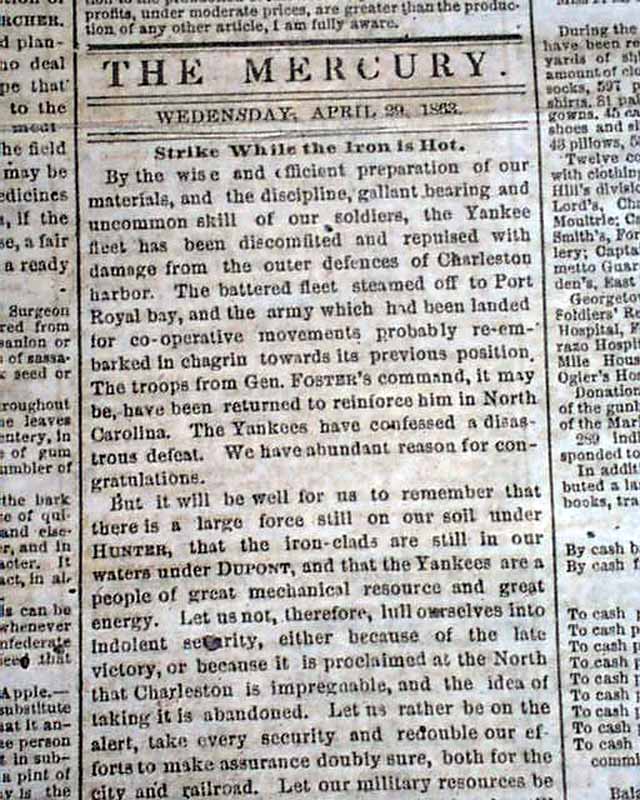 THE CHARLESTON MERCURY, South Carolina, April 29, 1863