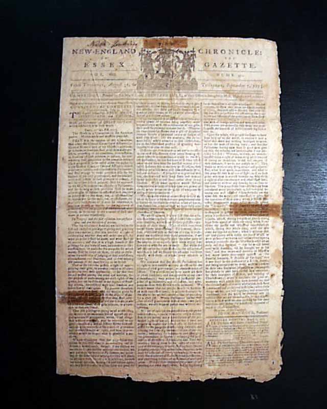 THE NEW ENGLAND CHRONICLE OR THE ESSEX GAZETTE, Cambridge, Sept. 7, 1775