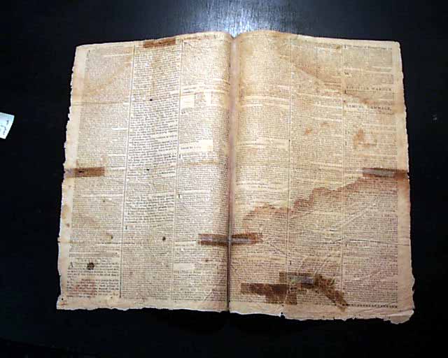 Complete in four pages, never bound nor trimmed, various wear at folds with some old tape stains which disfigure but cause no loss of readability. Various archival mends to old tears and archivally rejoined at the spine.