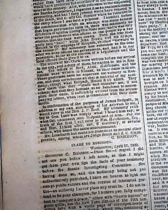Page 4 has a report headed: "THE JOHN BROWN RAID" "The Senate Investigation" "More Testimony On The Subject" and more. Text takes up over 2 1/2 columns.