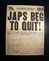 LOS ANGELES EXAMINER, California, Aug. 10, 1945 The front page features one of the larges, boldest, and most dramatic headlines of World War II with: "JAPS BEG TO QUIT ! "and various related subheads (see).