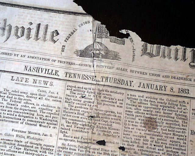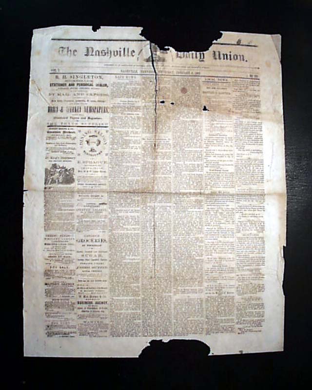 NASHVILLE DAILY UNION, Tennessee, January 8, 1863