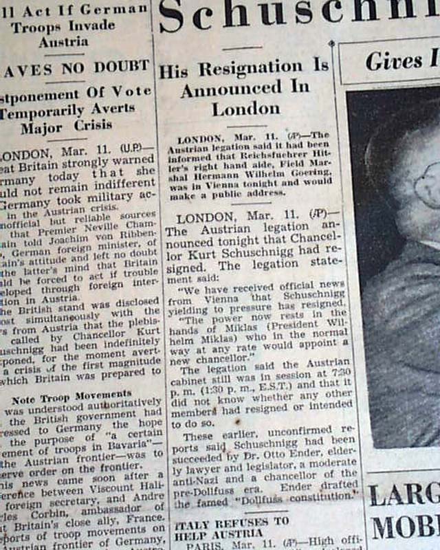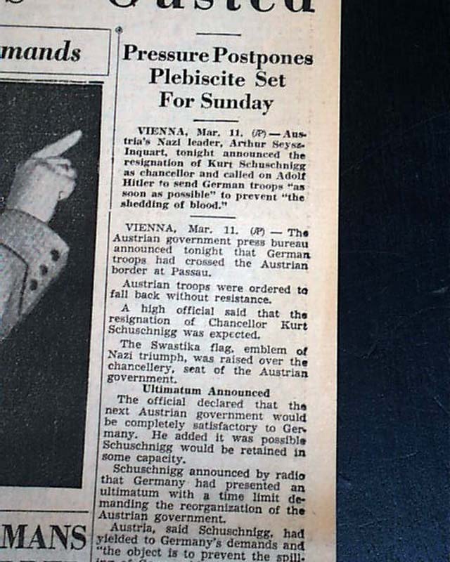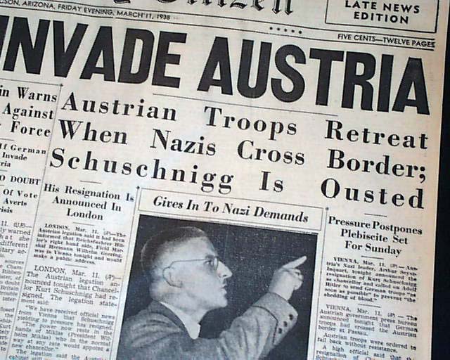 The front page has a banner headline: "GERMANS INVADE AUSTRIA" with subheads. (see) A very historical event that helped lead to the start of World War II.