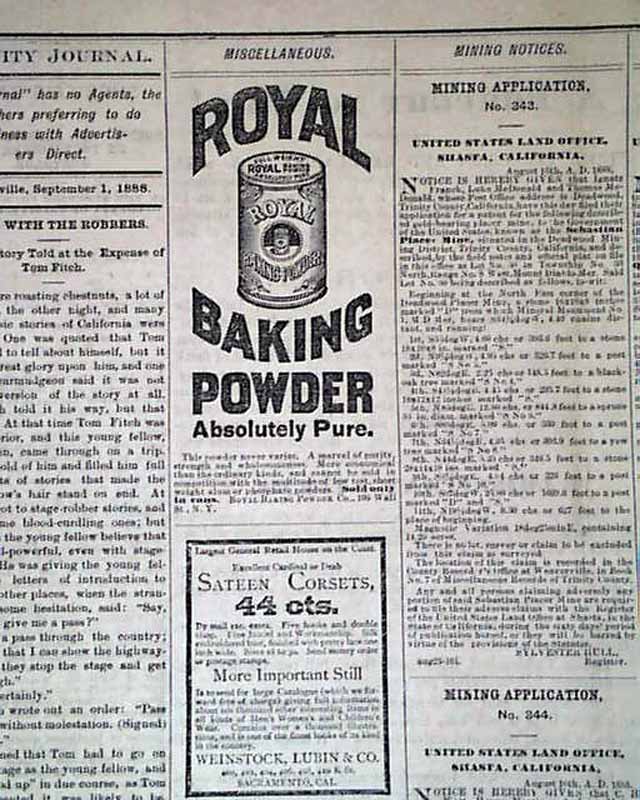 WEEKLY TRINITY JOURNAL, Weaverville, California, September 1, 1888
