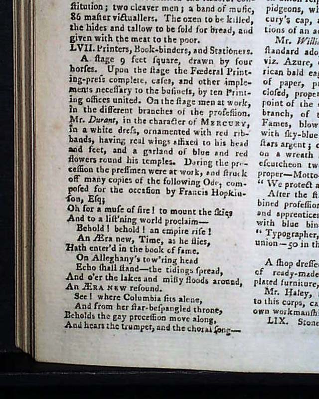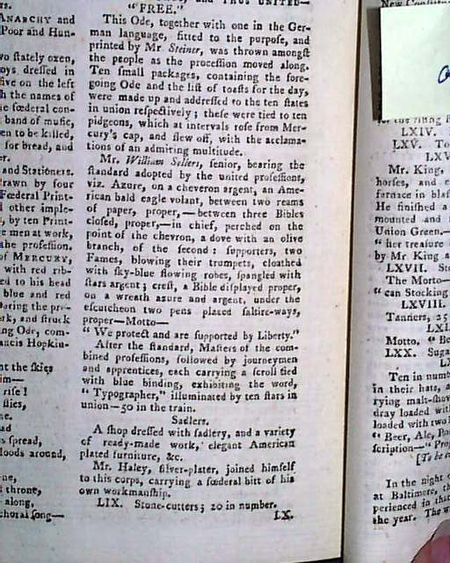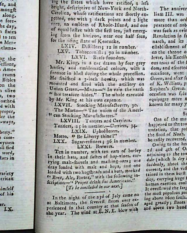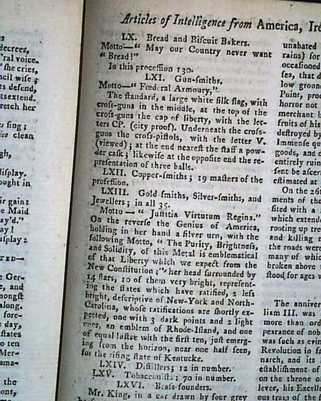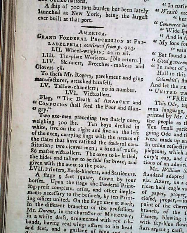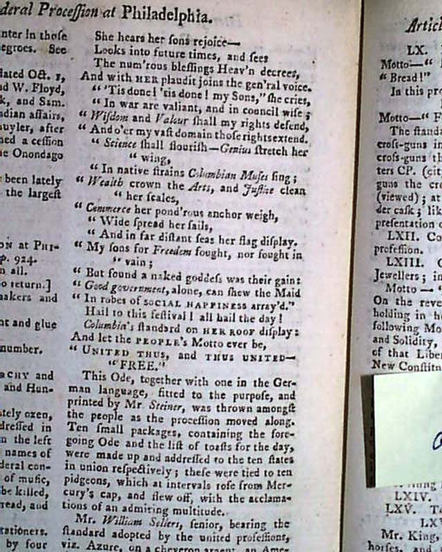 At the back is the continuation of a rather detailed account of the "Grand Federal Procession at Philadelphia" celebrating the 4th of July and the creation of the new federal Constitution. This takes over a full page & concludes in a future issue (see).