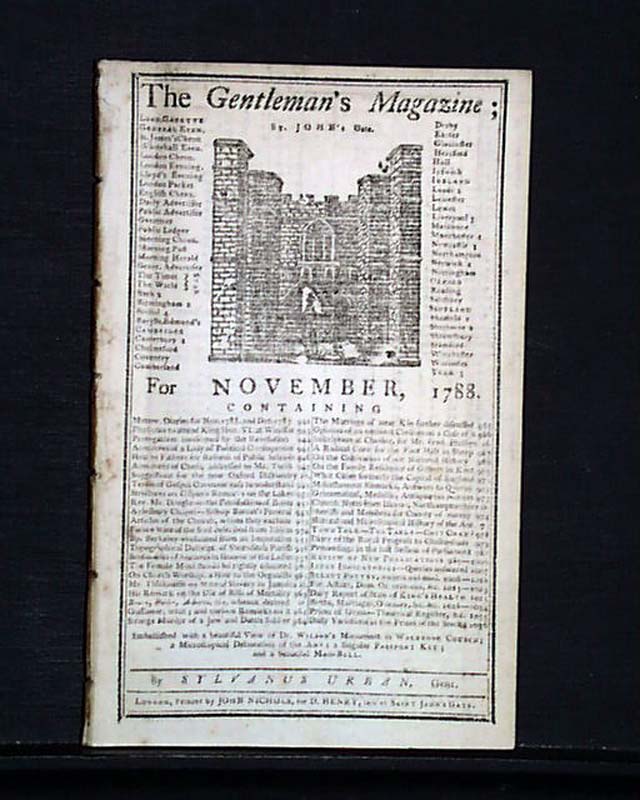 A very nice magazine from the "mother country" not long after the end of the Revolutionary War. This was the first periodical to use the word "magazine" in its title, having begun in 1731 and lasting until 1907.