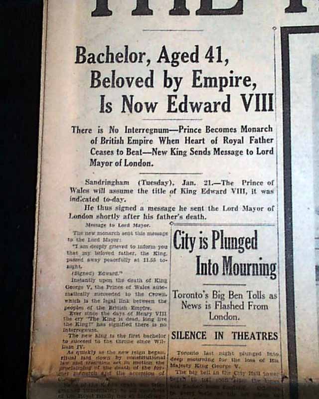 THE MAIL AND EMPIRE, Toronto, Canada, January 21, 1936