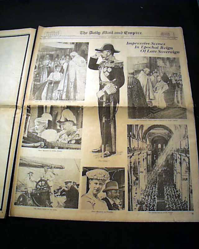 The front page has a nice banner headline: "THE KING IS DEAD" with subheads and two photos. Much more on the following pages. Nice to have in title under British rule.