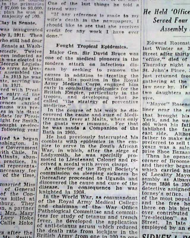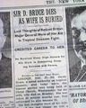 Also on the same page is a one column heading: "SIR D. BRICE DIES AS WIFE IS BURIED" with subheads and photo. (see)