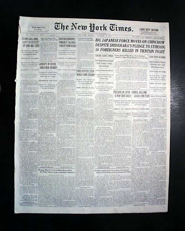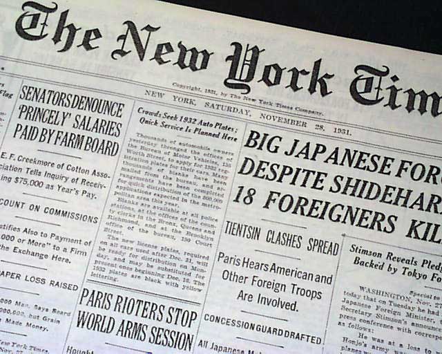 Other news, sports and advertisements of the day. Complete in 38 pages, this is the rare rag edition that was produced on very high quality newsprint, with a high percentage of cotton & linen content, allowing the issues to remain very white & sturdy into the present. Given the subscription cost, libraries & institutions rather than individuals were the primary subscribers of these high-quality editions. Nice condition.