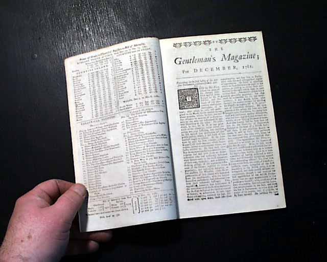 THE GENTLEMAN'S MAGAZINE, London, December, 1781* Charles Cornwallis, 1st Marquess Cornwallis