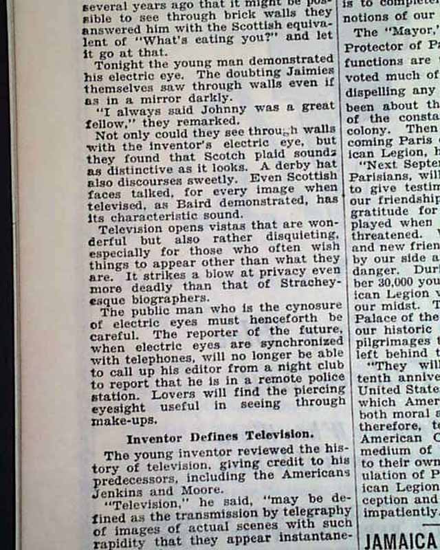 This was a very significant report concerning the founding of television, an invention which would change not only the worlds of entertainment & communication forever, but society as well.