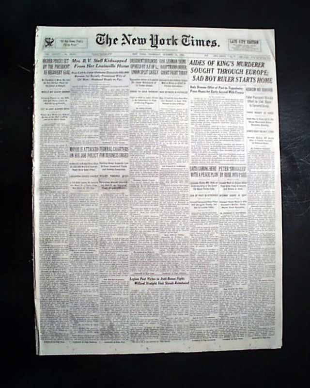 The top of the front page has a two column heading: "Mrs. B. V. Stoll Kidnapped From Her Louisville Home" with subhead. (see) Always nice to have notable events in history reported in this World famous publication.