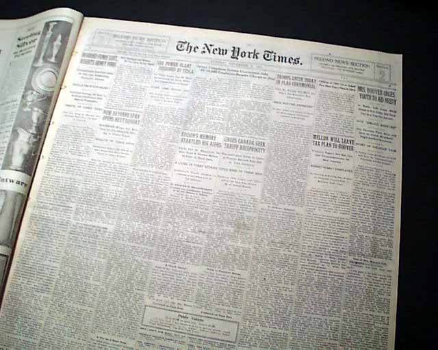 Other news, sports and advertisements of the day. Complete in a thick 100 page Sunday edition, this is the rare rag edition that was produced on very high quality newsprint, with a high percentage of cotton & linen content, allowing the issues to remain very white & sturdy into the present. Given the subscription cost, libraries & institutions rather than individuals were the primary subscribers of these high-quality editions. Nice condition.