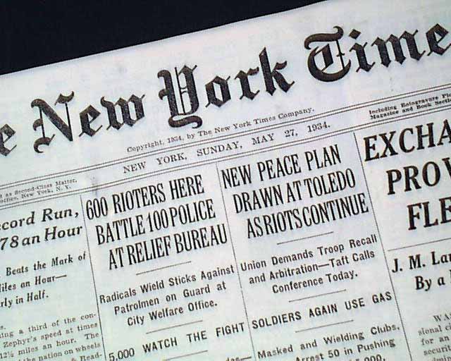 Other news of the day. Complete 1st section only with all 30 pages, this is the rare rag edition that was produced on very high quality newsprint, with a high percentage of cotton & linen content, allowing the issues to remain very white & sturdy into the present. Given the subscription cost, libraries & institutions rather than individuals were the primary subscribers of these high-quality editions. Nice condition.