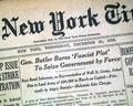 wikipedia notes: Retired U.S. Marine Corps officer Smedley Butler caused an uproar when he gave testimony before a House of Representatives committee on un-American activities in which he alleged a conspiracy among Wall Street interests to overthrow the Roosevelt Administration and replace it with a fascist dictatorship. This alleged conspiracy would come to be known as the Business Plot.