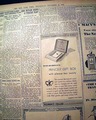Other news, sports and advertisements of the day. Complete in 40 pages, light toning, a little margin wear, archival mend on the front page, address stamp in the masthead, generally good.