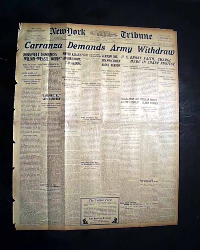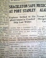 The front page has a one column heading: "SHACKLETON SAFE AT PORT STANLEY" with subhead. (see)