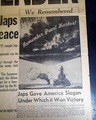 We have handled many dramatic V-J Day newspapers through the years but few have been as dramatic and displayable as this one. This "Special Edition", as noted in the upper left and right corners, has a bold, two line head taking the entire top half of the front page reading: "JAPANESE SURRENDER" using type which is 4 inches tall. There is also a 2 line, 5 column subhead: "Truman Announces Japs Accept Terms of Peace". The ftpg. photo is headed: "We Remembered" and across the photo: "Remember Pearl Harbor ! "