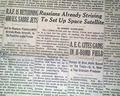 The announcement in this newspaper is part of the Wikipedia report on the space race (see). This is a very notable event, essentially announcing the start of the now-famous space race & as such a cornerstone issue for any space collection.