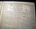 The front page has a nice 3-line headline which essentially announced the creation of the "space race" between the United States and the Soviet Union: "U.S. To Launch Earth Satellite 200-300 Miles Into Outer Space; World Will Get Scientific Data" with various subheads as well as 2 photos of the "Man-made Satellite..." with further details (see). In reality the Soviets would take the lead in the space race with the successful launch of Sputnik 1 in October, 1957. The American would respond 4 months later with a spectacular failure, to be followed-up by its first space success in early 1958 (see hyperlink for much more).