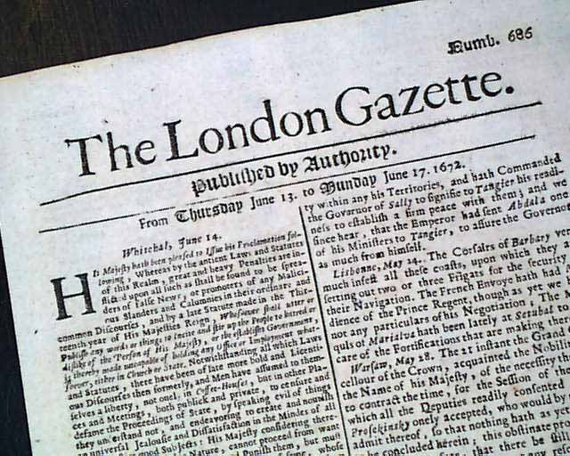 Home > Genuine London Gazette newspaper from 1672...