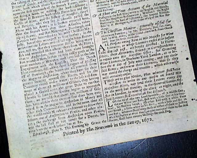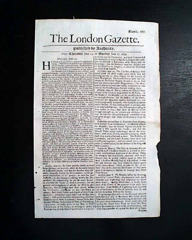 Genuine London Gazette newspaper from 1672...