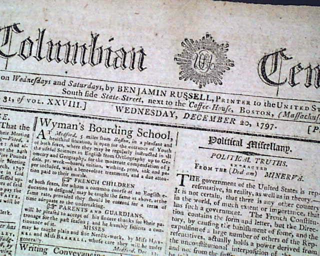 COLUMBIAN CENTINEL, Boston, Dec. 20, 1797