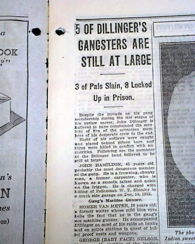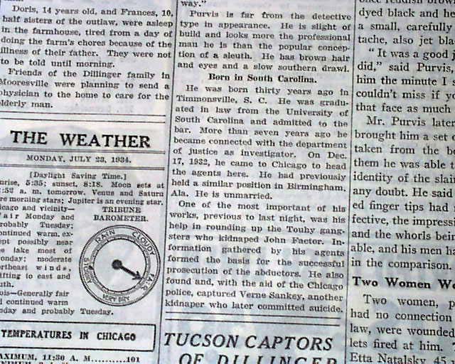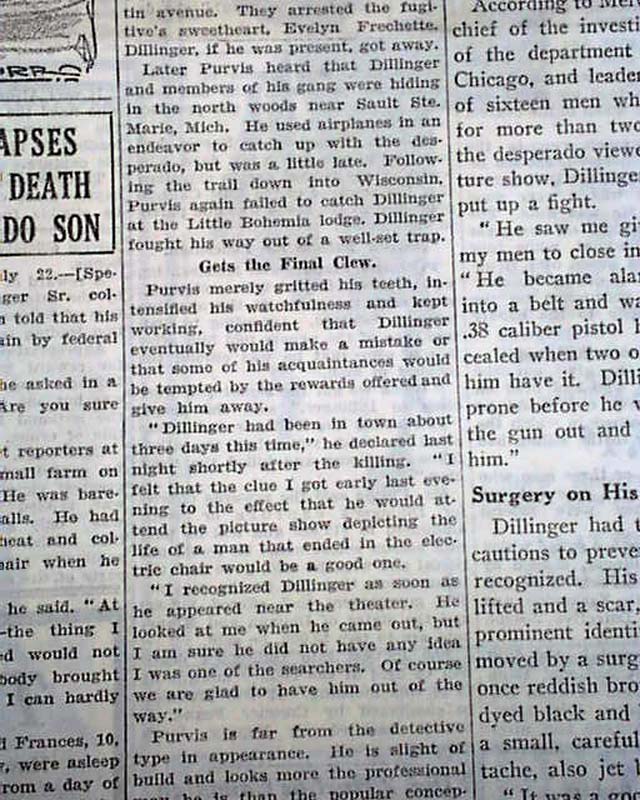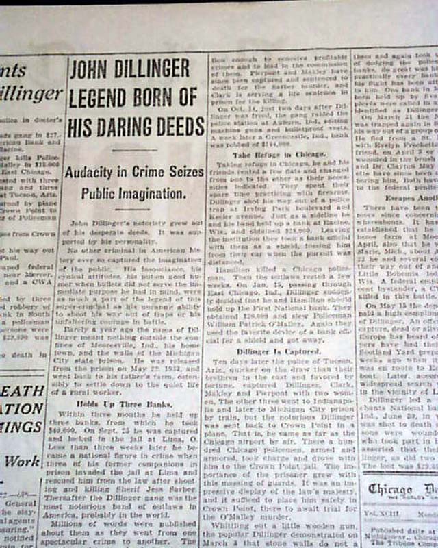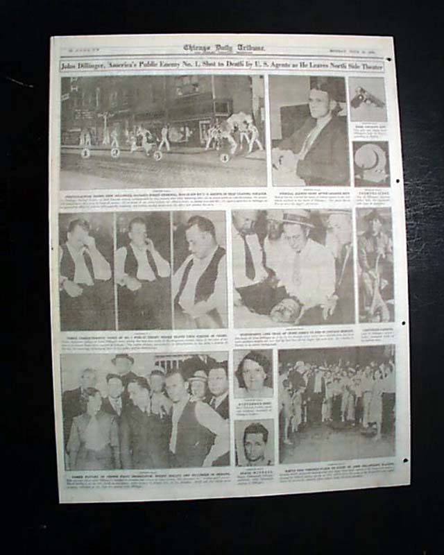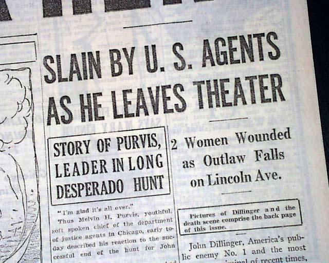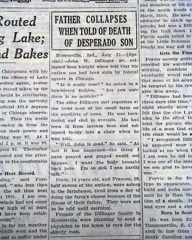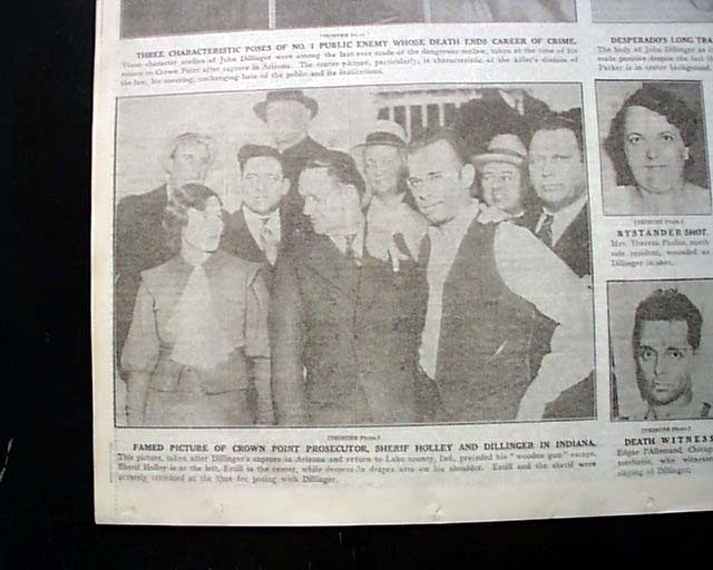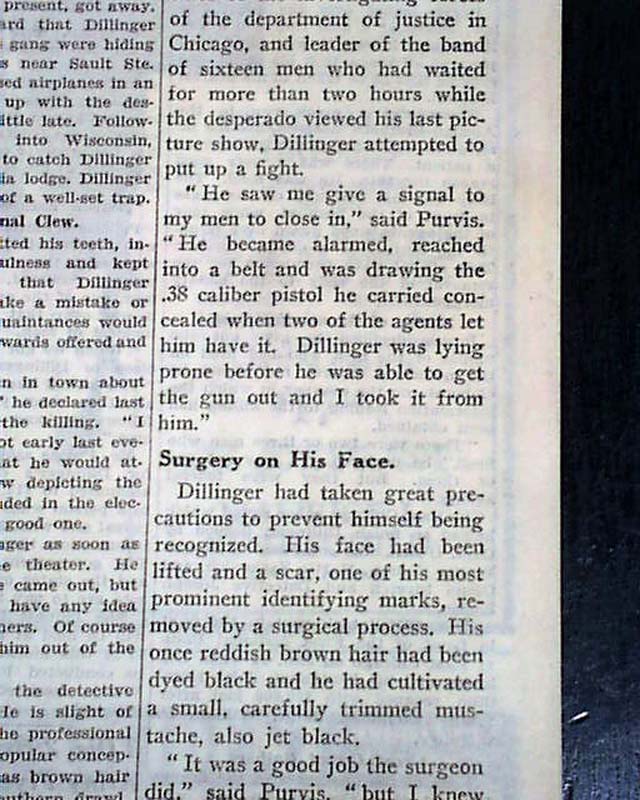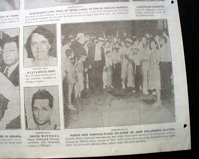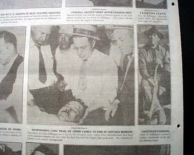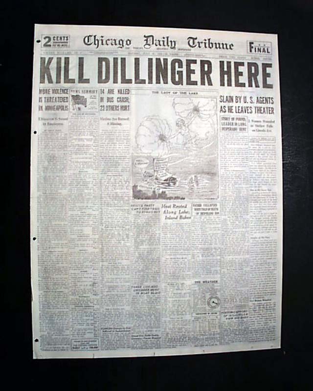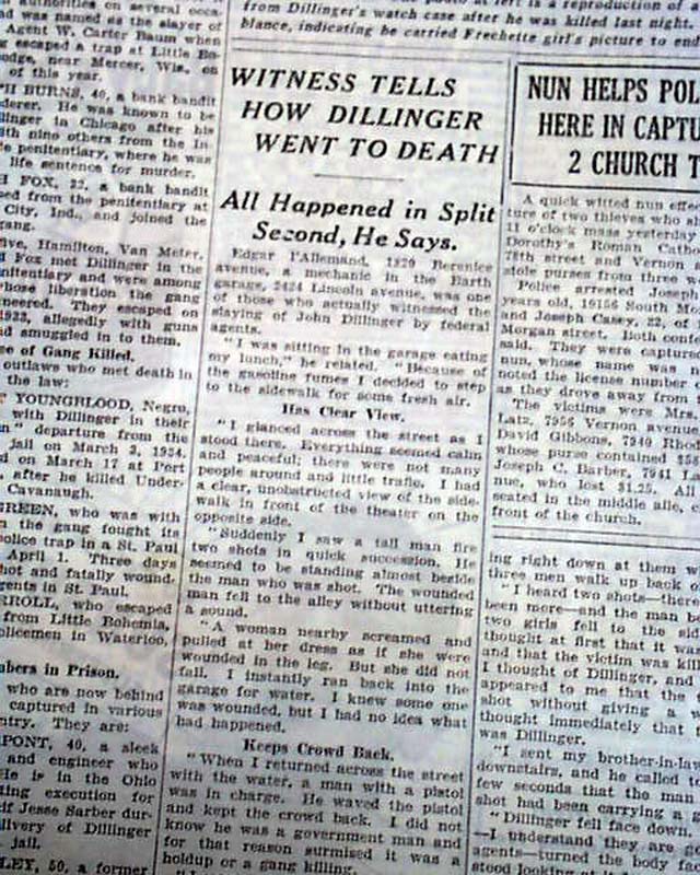 Perhaps the very best newspaper to be had for a report on the killing of infamous outlaw  & gangster John Dillinger, as this is the city where he it happened.