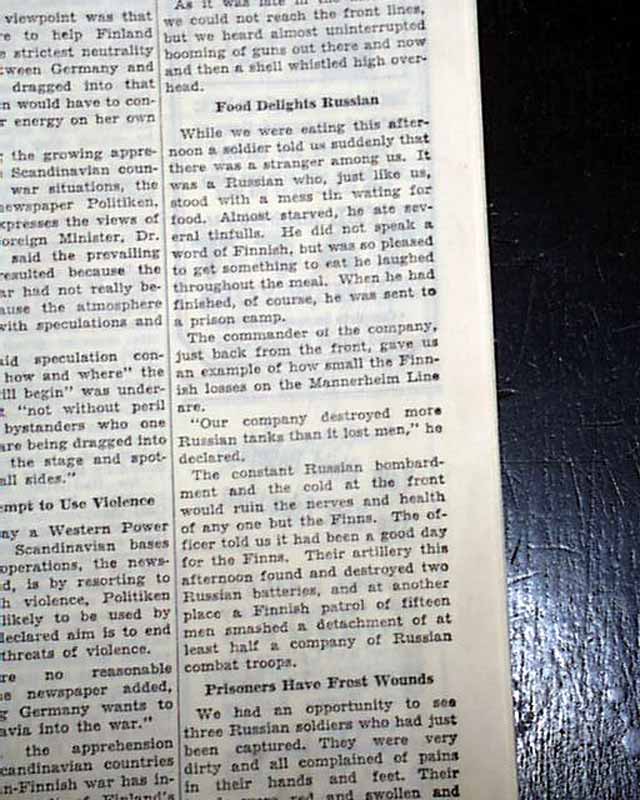 The top of the front page has a one column heading: "SOVIET SKI ATTACK SMASHED BY FINNS IN FIGHT FOR SALLA" with subheads. Always nice to have notable events in history reported in this World famous publication.