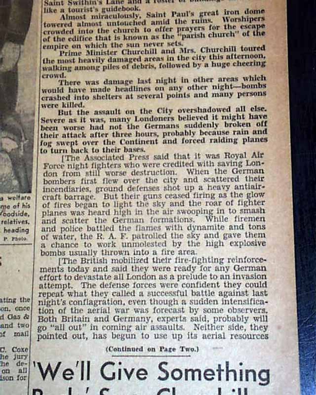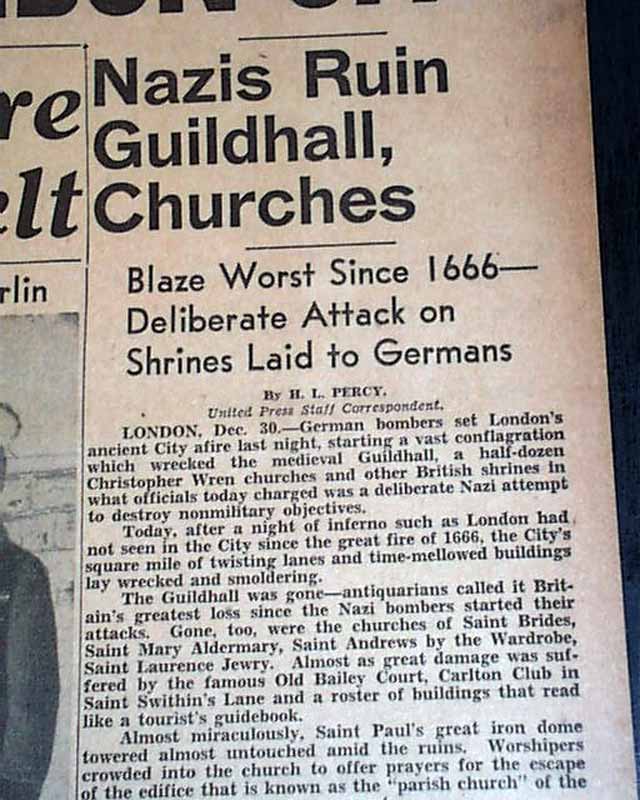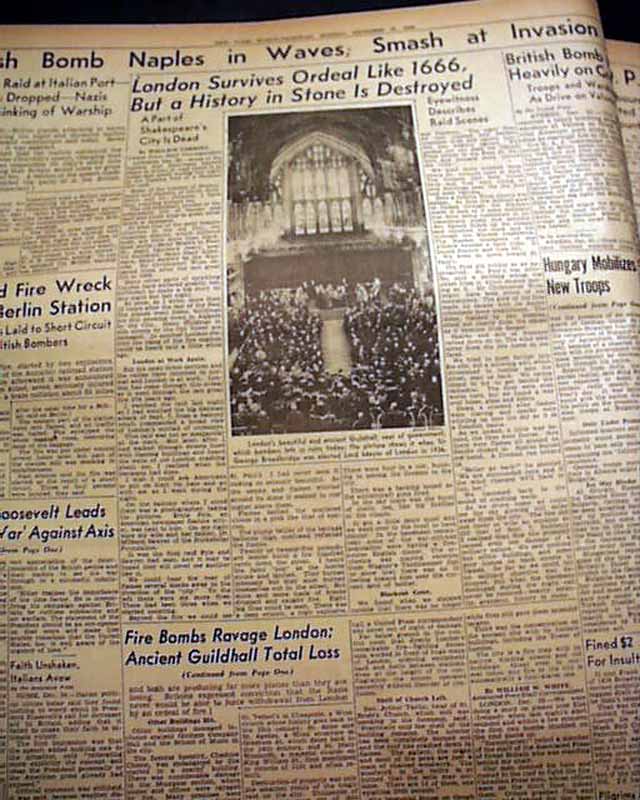The front page has a great banner headline: "RAID FIRE WRECK LONDON CITY" with subheads. (see) Nice for display.