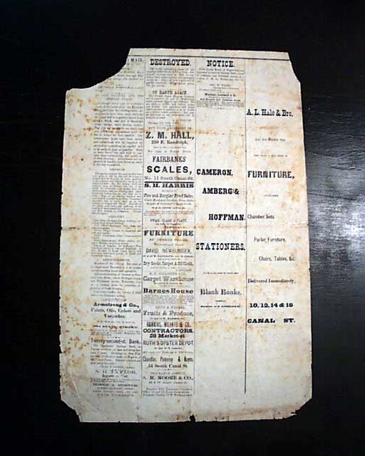 A great issue created under challenging situations as explained on page 2: "To Our Readers & The General Public" "Although not a type or a dollar's worth of the material of the Evening Mail survived the conflagration, arrangements have been made whereby the paper will be regularly issues from Lind's Block, east end of Randolph street bridge, until further notice. That you will bear with our small size & indifferent appearance until we can do better..." and more.
