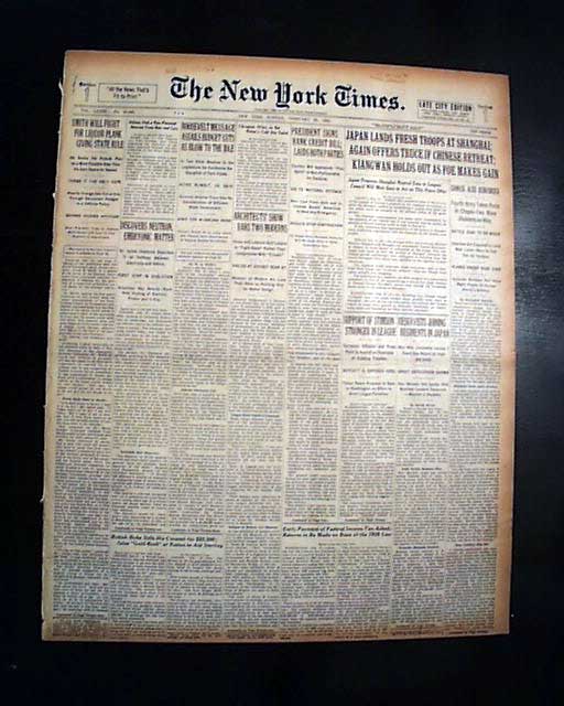 Other news of the day. Complete 1st section only with all 26 pages, light toning and minor wear at the margins, a few small library stamps within the masthead, generally nice.