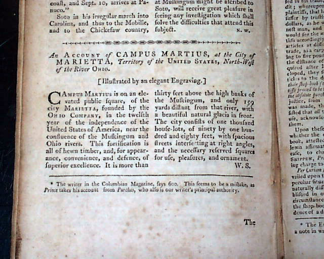THE COLUMBIAN MAGAZINE, Philadelphia, November, 1788* Fort Campus Martius - Ohio