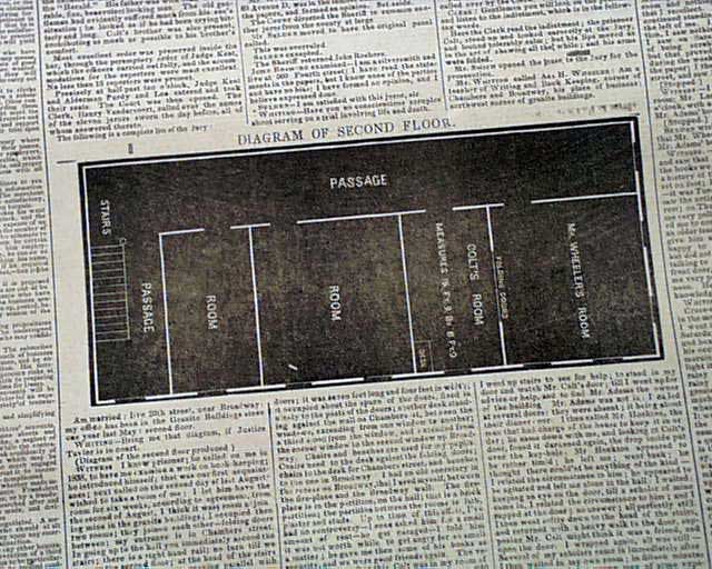 Note that the front page has a print headed: "Samuel Adams, The Printer, Before He Was Cut Up and Salted." Also a "Diagram of Second Floor" where the murder happened.